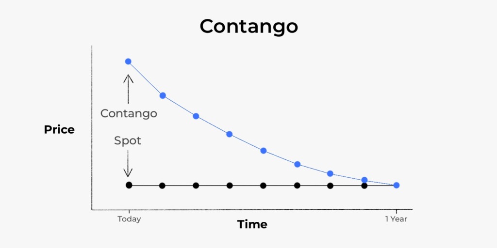 As mentioned, contango markets happen when the futures prices go above the spot price. For example, let’s say that you have a futures contract for December 2023 that is worth $100.