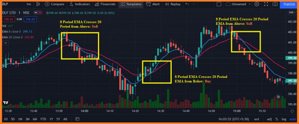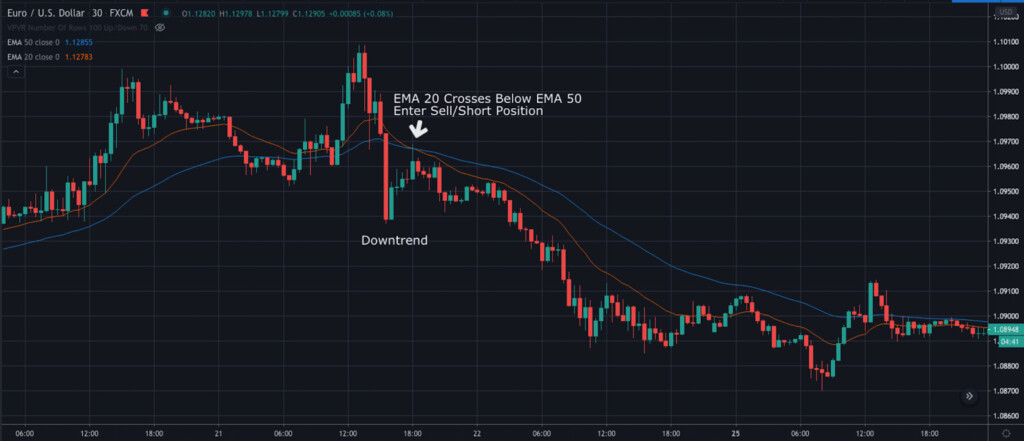 Fig 1. The EMA crossover strategy for first-time traders