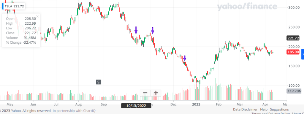 For our example, we will use Tesla’s chart, where the price is shown in USD.
