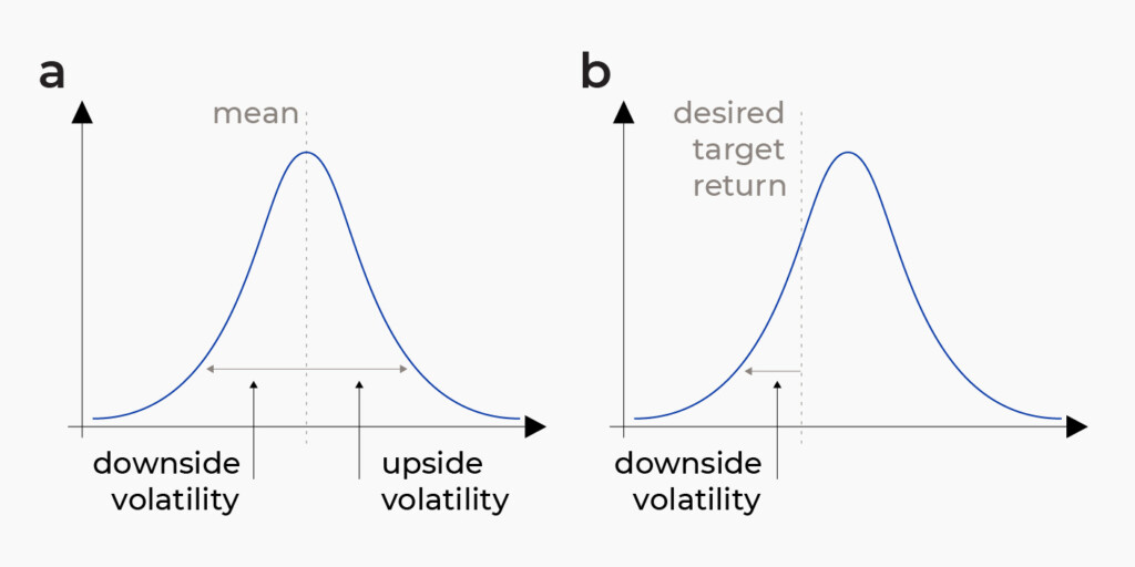 Unlike other metrics that consider all deviations from the average return, the Sortino ratio focuses only on negative returns. So, the metric represents the downside risk, i.e., how much extra return you get for each unit of risk that causes losses.