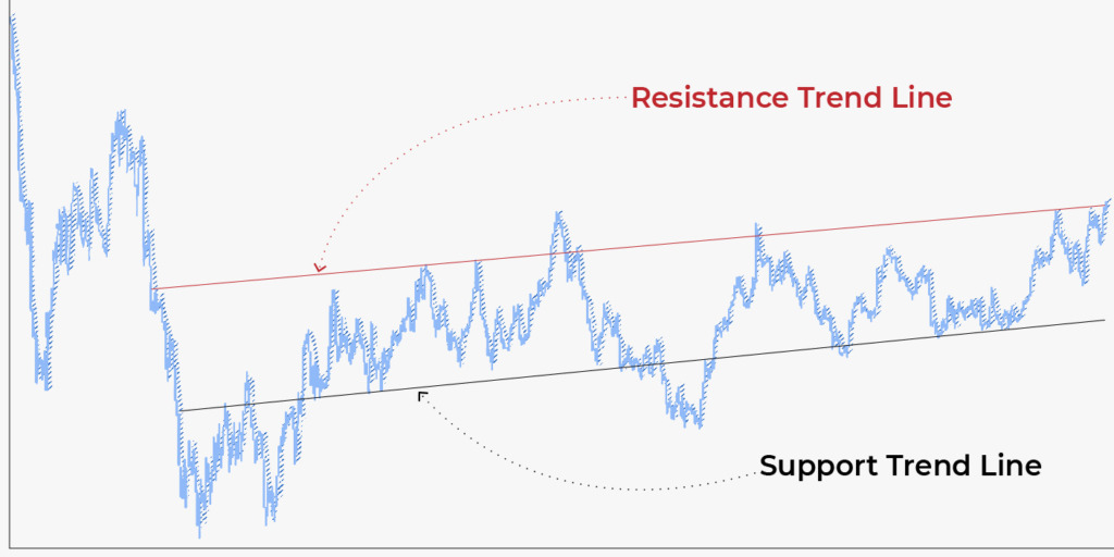 Trendlines are used to shape the current trend. When the price moves within a framed channel, it’s much easier to determine levels of a potential rebound. Trendlines serve as support and resistance targets. When the price comes to the upper boundary of the trend channel, you can expect it to fall. Therefore, you open a sell trade after it rebounds. If the price is near the channel’s lower boundary, you should be ready to open a buy position after the price turns around.