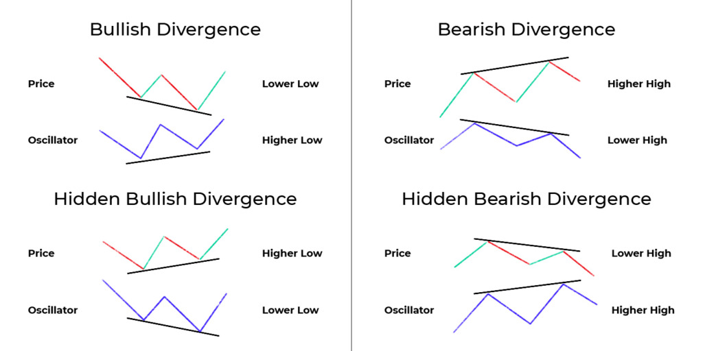 There are only four divergence types: (1) regular bullish, (2) regular bearish, (3) hidden bullish, and (4) hidden bearish.