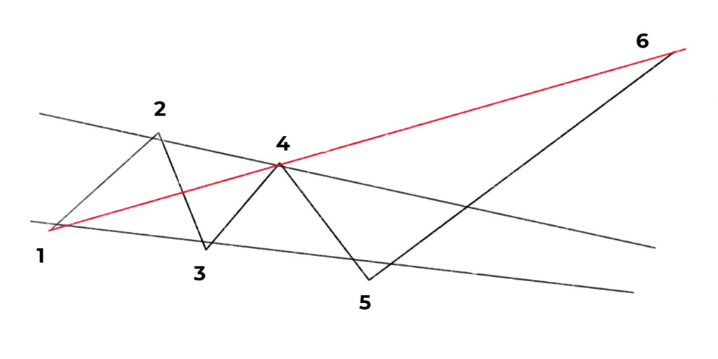Figure v: Take profit level (wave 6) in a Bullish Wolfe Wave