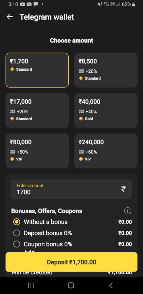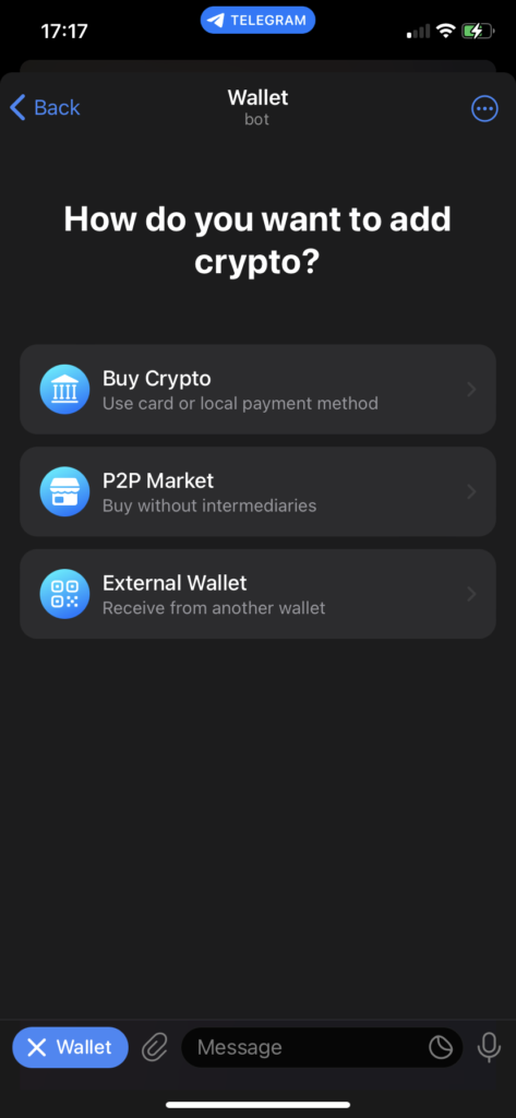 If you’re using Telegram Wallet for the first time: (if not go to step 3)