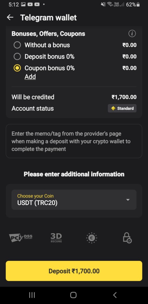 Important! If you are paying with Toncoins or Notcoins, copy and paste the memo from the provider’s page