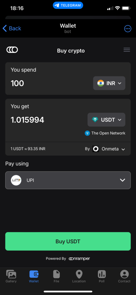 7. Enter the amount you want to spend and tap ‘Buy USDT’