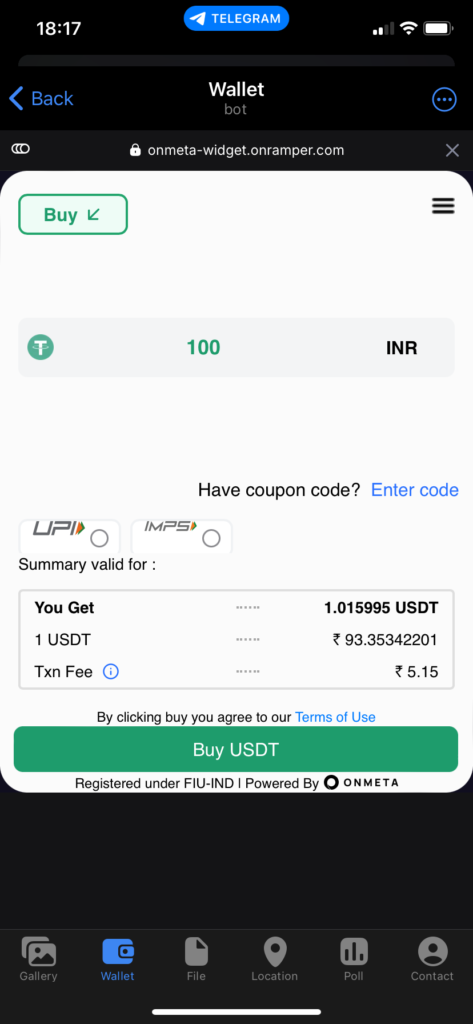 13. You will go back to the provider’s page. Tap ‘Buy USDT’ again