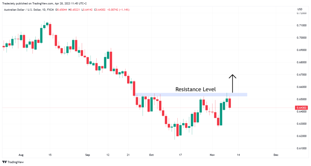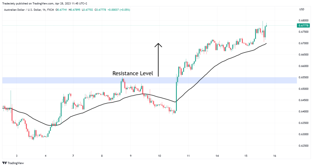 In the case of a bounce strategy, you opt to identify bounces off support or resistance levels instead of seeking a higher timeframe breakout. For example, a higher timeframe resistance level that repeatedly holds serves as a signal. When the price stays below this level, look out for the market direction to turn downward.