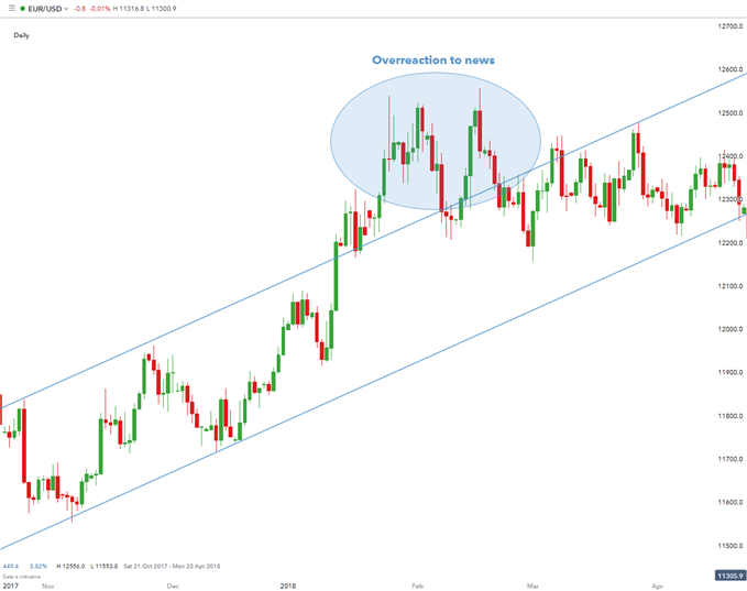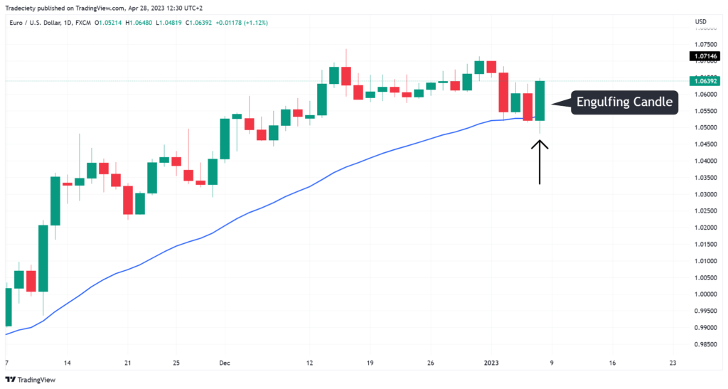 Consider a strong bullish trend in EUR/USD. When the market is trending up, you’ ll look for opportunities to buy at the best possible price.