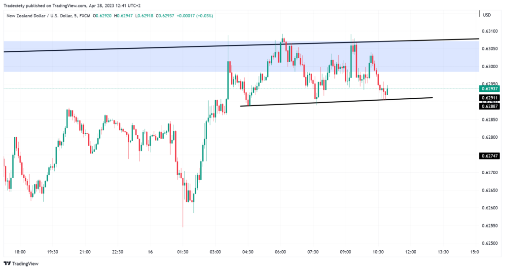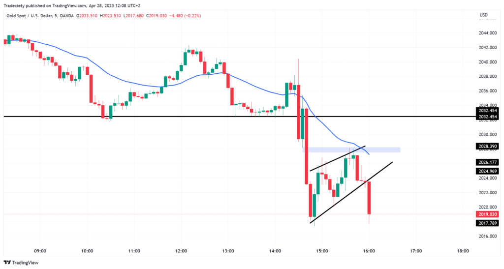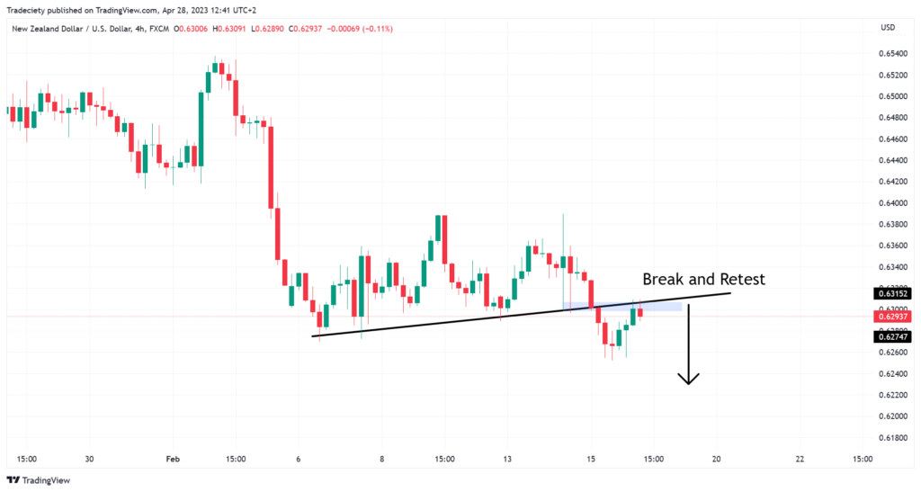 You can also use complex chart patterns to guide your trading decisions on a higher timeframe. For example, if there’s a bearish trend on a higher 4-hour timeframe and you see a pattern that looks like a sideways flag with a trendline, that’s a signal.