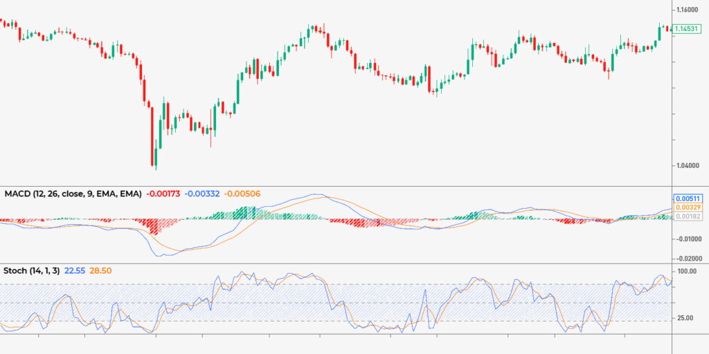 Uma das maneiras mais fáceis de detectar uma confluência ao negociar é adicionar um indicador técnico ao processo de negociação. Ao combinar dois indicadores que fornecem um sinal de negociação semelhante, você poderá determinar se deve ou não entrar em uma negociação. Isso aumentará suas chances de tomar decisões de negociação lucrativas e também é uma excelente maneira de filtrar sinais de negociação falsos.
