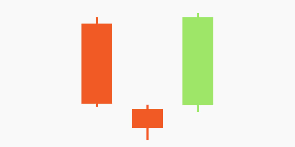 A estrela da manhã é um padrão de três velas que ocorre durante uma tendência de baixa. A primeira vela é uma longa vela vermelha (preta), a segunda vela é uma vela menor que pode ser vermelha (preta) ou verde (branca) e a terceira vela é uma longa vela verde. Isso mostra uma forte pressão de compra e uma potencial reversão de alta.