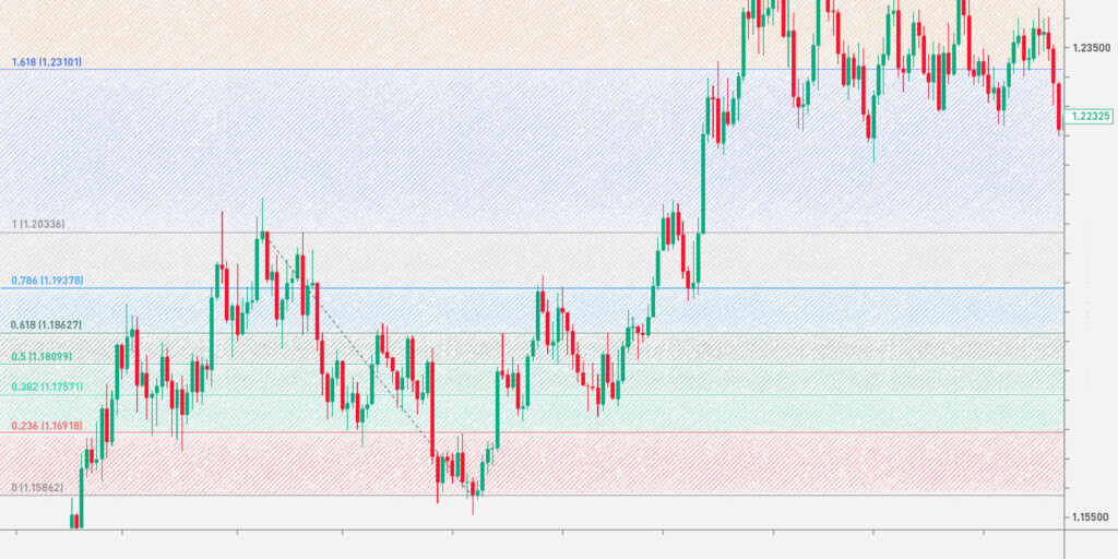 Fibonacci retracement is another tool you can use to determine pullbacks. The idea is to implement the indicator during a solid trend and wait for the price to rebound from 23.6%, 38.2%, 50% (1), 61.8%, or 78.6% levels.