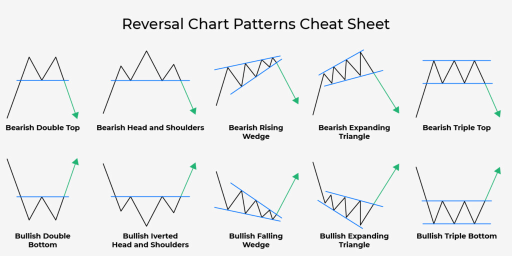 Trend kanalları, üçgenler, bayraklar, flamalar vb. gibi formasyonlarının yanı sıra devam ve dönüş formasyonları vardır. Bu strateji grubunun genel adı price action’dır (fiyat eylemi). Bu şekil, trend tersine dönme modellerinin bir örneğini göstermektedir.