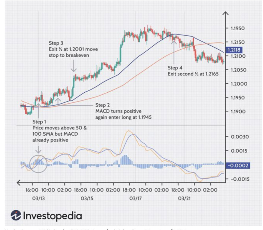 MA’ları ve MA tabanlı MACD göstergesini birleştirebilirsiniz.